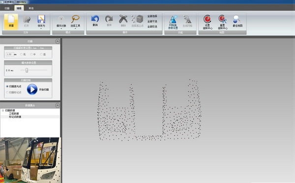 以全局攝影測量系統獲得的標記點數據為整體基準,輻射到個別掃描區(qū)域,掃描汽車整車以及部分拆解后的零件,獲取其三維數據。